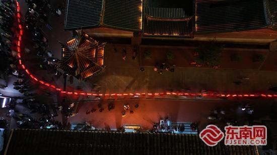r在巡游队伍中,灯首们肩扛扁担、紧握纤绳,弓步向前;上万名参与者同心同向、步调一致,在铿锵的锣鼓声中稳步前行。摇曳的红灯笼映红夜空,也照亮了每个人脸上的笑容。与此同时,火鼎公婆、拍胸舞、车鼓舞等特色民俗表演轮番登场,丰富的非遗表演让整场活动更具观赏性与文化韵味。